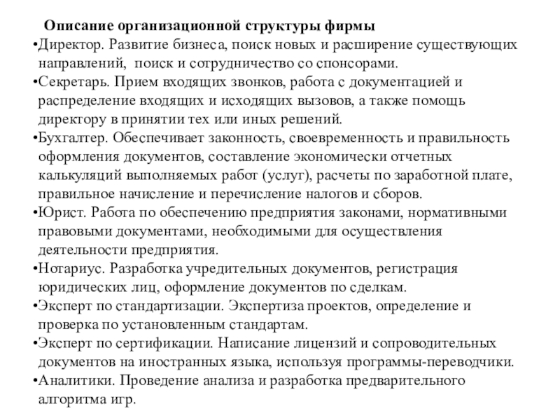 для руководства, секретариата, бухгалтерии, юридического отдела, отдела стандартизации и сертификации,