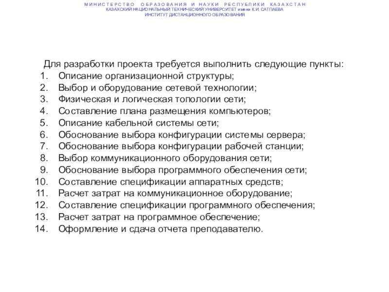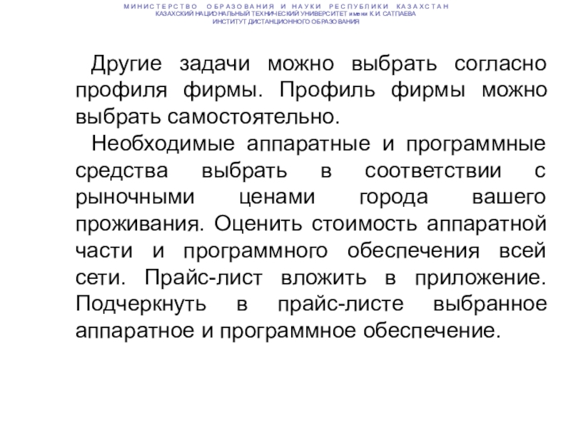 Необходимые аппаратные и программные средства выбрать в соответствии с рыночными ценами города вашего проживания. Оценить стоимость аппаратной части и программного обеспечения всей сети. Прайс-лист вложить в приложение. Подчеркнуть в прайс-листе выбранное аппаратное и программное обеспечение.