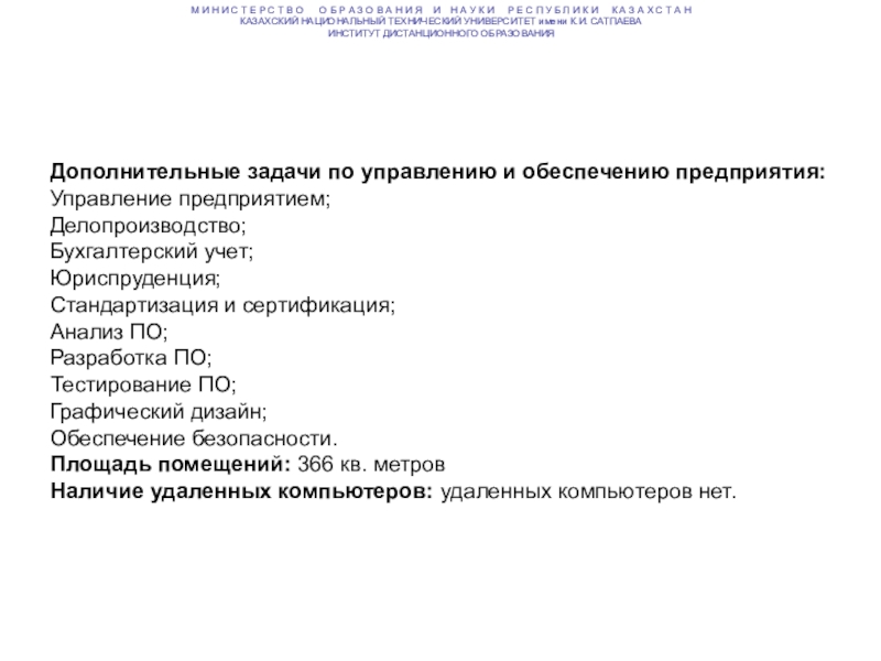 Дополнительные задачи по управлению и обеспечению предприятия: