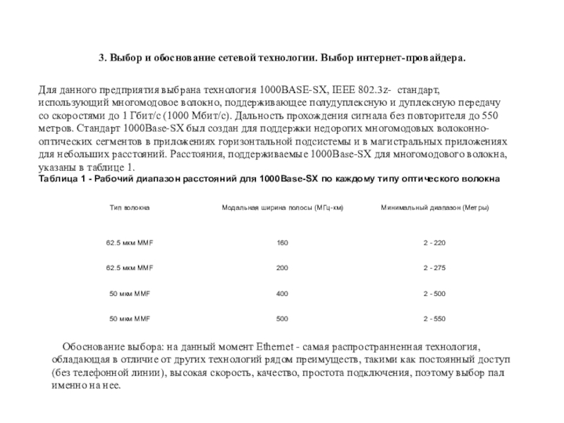 3. Выбор и обоснование сетевой технологии. Выбор интернет-провайдера.