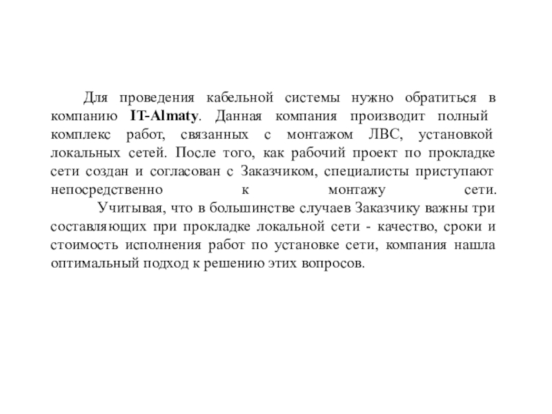 Слайд 29Для проведения кабельной системы нужно обратиться в компанию IT-Almaty. Данная