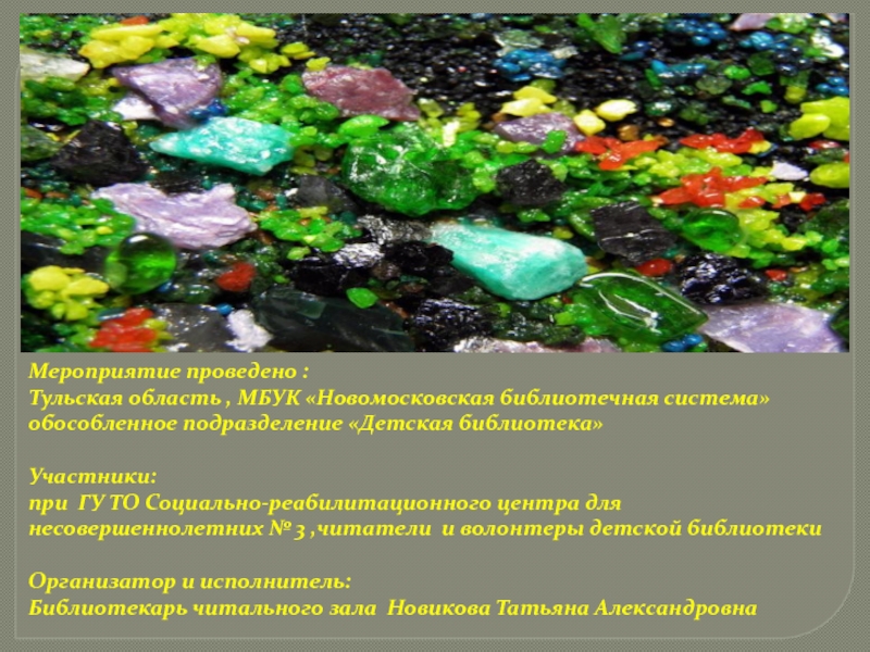 Мероприятие проведено : Тульская область , МБУК «Новомосковская библиотечная система» обособленное подразделение «Детская библиотека»Участники: при ГУ ТО