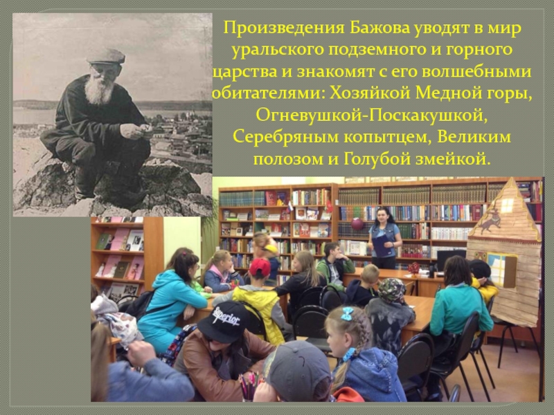 Произведения Бажова уводят в мир уральского подземного и горного царства и знакомят с его волшебными обитателями: Хозяйкой