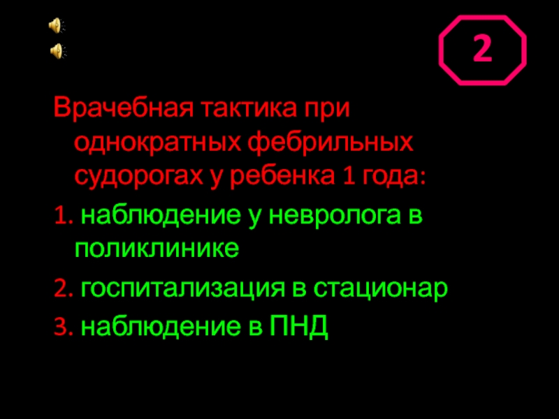 Слайд 2Врачебная тактика при однократных фебрильных судорогах у ребенка 1 года: