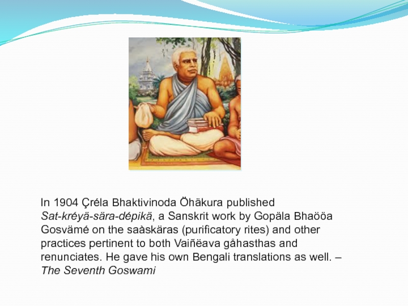 Слайд 20In 1904 Çréla Bhaktivinoda Öhäkura published Sat-kréyä-sära-dépikä, a Sanskrit work