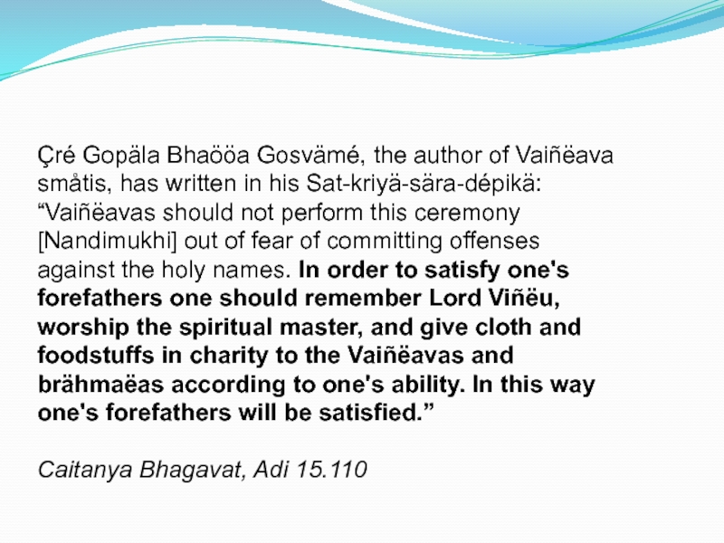 Слайд 22Çré Gopäla Bhaööa Gosvämé, the author of Vaiñëava småtis, has