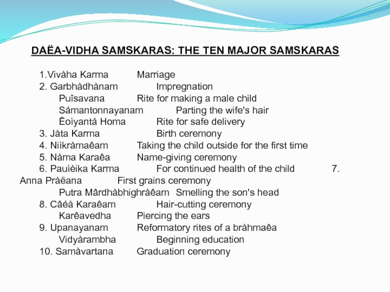 Слайд 13DAËA-VIDHA SAMSKARAS: THE TEN MAJOR SAMSKARAS
