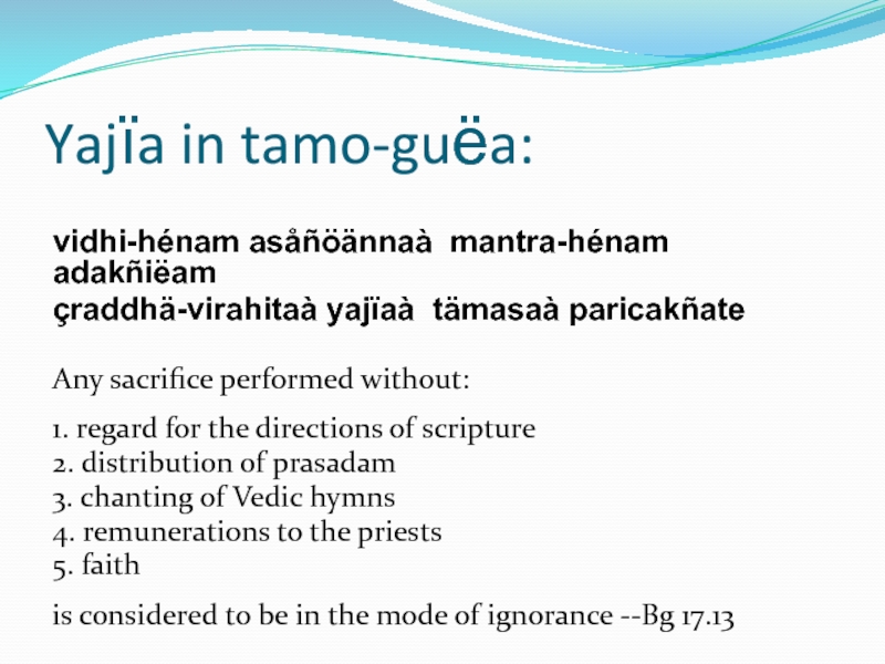 çraddhä-virahitaà yajïaà tämasaà paricakñate