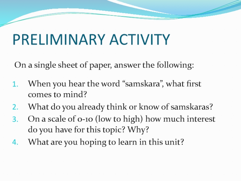 Write about a samskara you have personally undergone. What impressions has it left on you? (If you haven’t had any or can’t remember, think of any event that has influenced you either positively or negatively.)