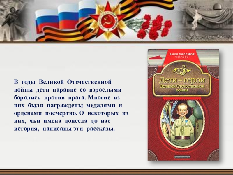 Слайд 29В годы Великой Отечественной войны дети наравне со взрослыми боролись
