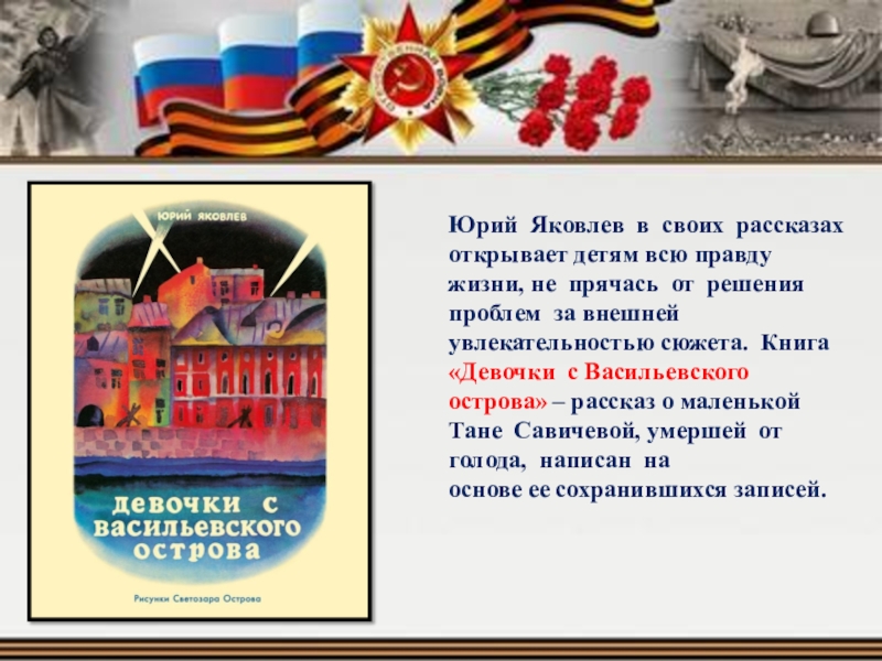 «Девочки с Васильевского острова» – рассказ о маленькой Тане Савичевой, умершей от голода, написан на