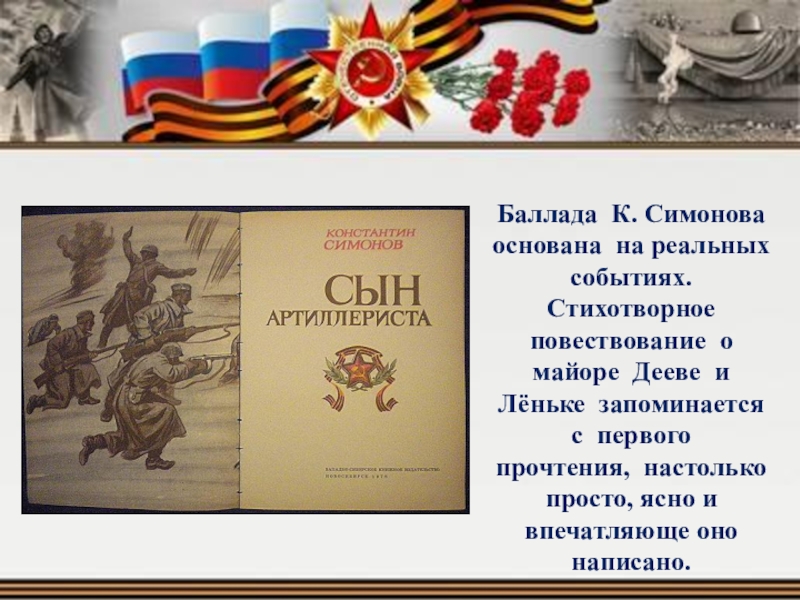 Баллада К. Симонова основана на реальных событиях. Стихотворное повествование о