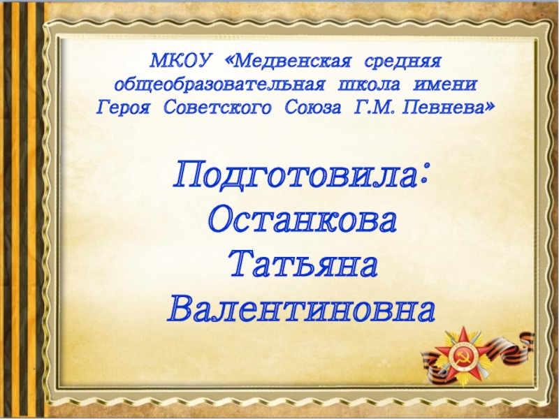 Слайд 33МКОУ «Медвенская средняя общеобразовательная школа имени Героя Советского Союза Г.М.