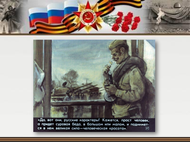 Слайд 27В рассказе А. Толстого «Русский характер» главный герой после тяжёлого
