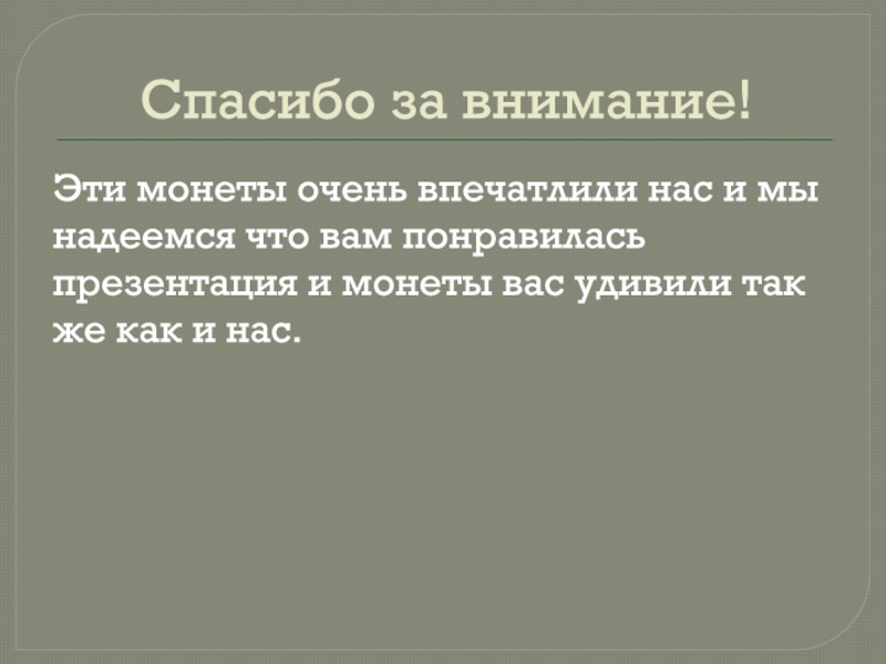 Спасибо за внимание!Эти монеты очень впечатлили нас и мы надеемся что вам понравилась презентация и монеты вас