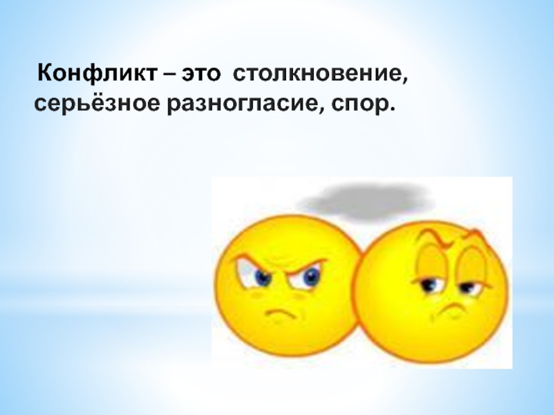 Слайд 2 Конфликт – это столкновение, серьёзное разногласие, спор.