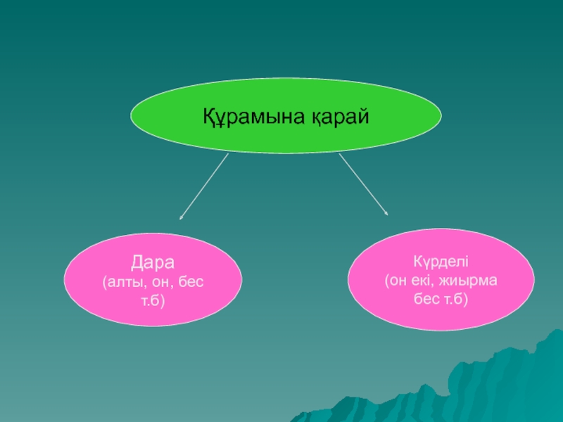 Құрамына қарайДара(алты, он, бес т.б)Күрделі(он екі, жиырма бес т.б)