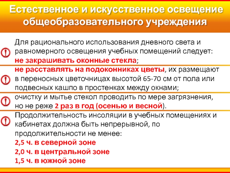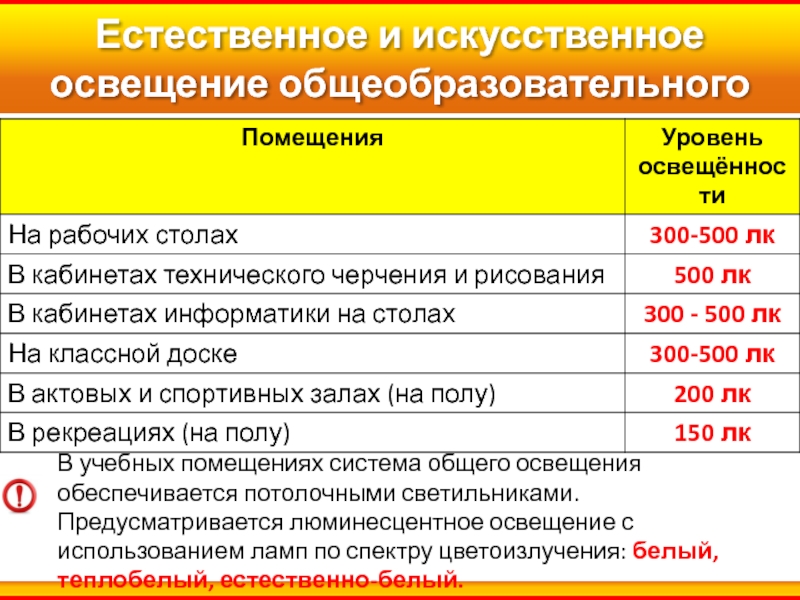 Слайд 9Естественное и искусственное освещение общеобразовательного учреждения