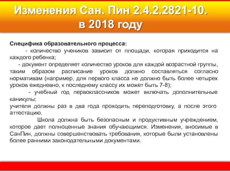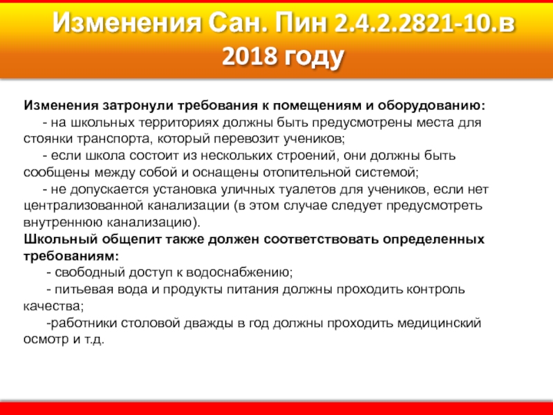 Слайд 3Изменения Сан. Пин 2.4.2.2821-10.в 2018 году