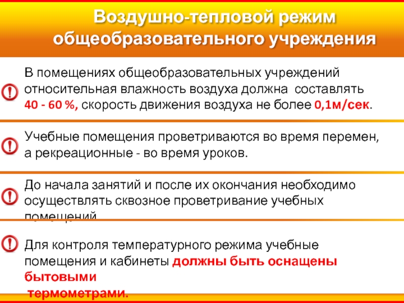 Слайд 7Воздушно-тепловой режим общеобразовательного учреждения