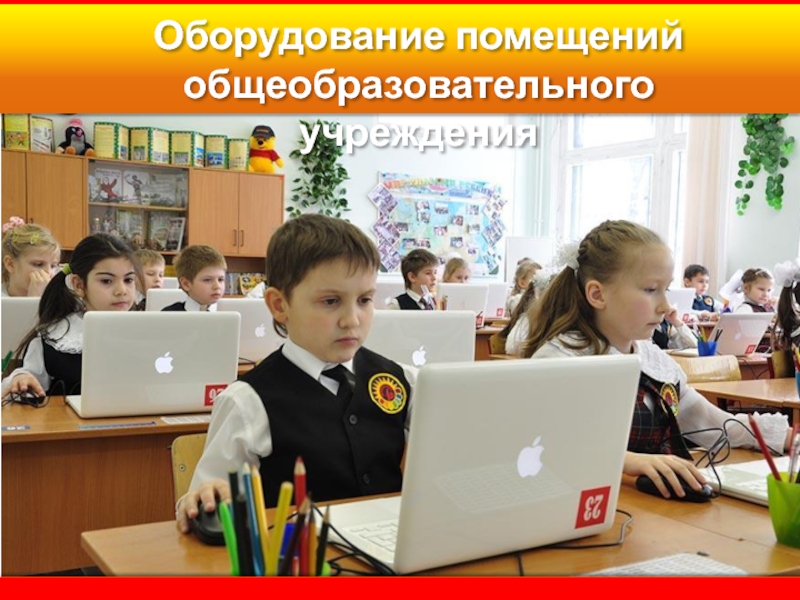Слайд 13Оборудование помещений общеобразовательного учреждения