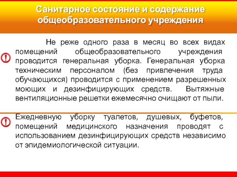 Слайд 11Санитарное состояние и содержание общеобразовательного учреждения