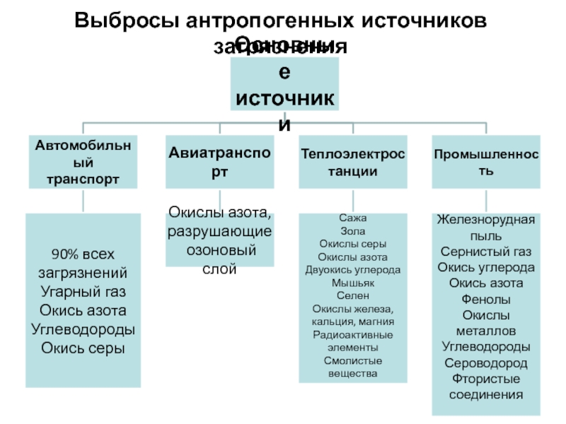 Слайд 18Выбросы антропогенных источников загрязнения