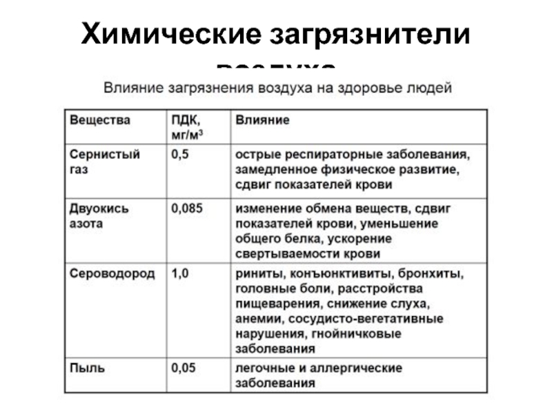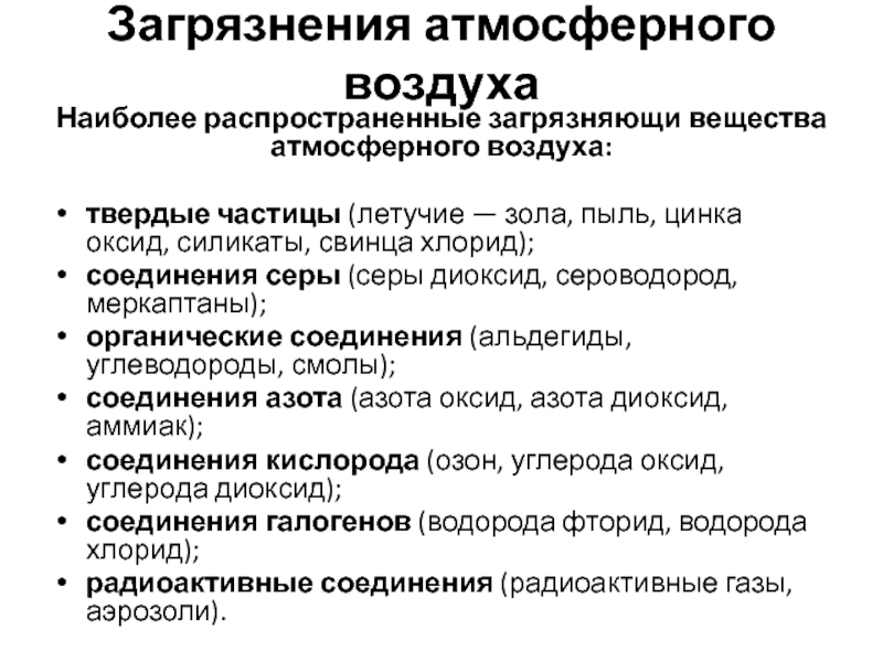 Наиболее распространенные загрязняющи вещества атмосферного воздуха: