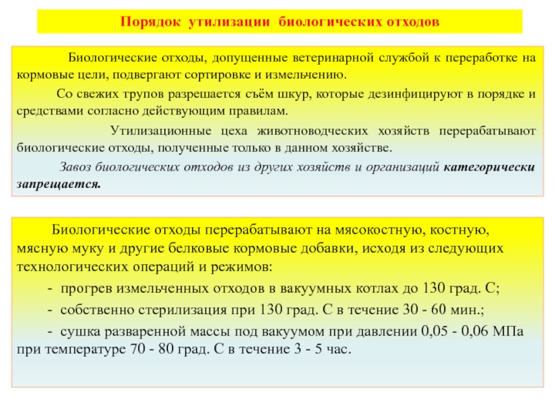Слайд 26Порядок сжигания биологических отходов (трупов животных)