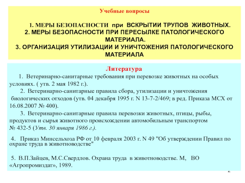 2. Ветеринарно-санитарные правила сбора, утилизации и уничтожения