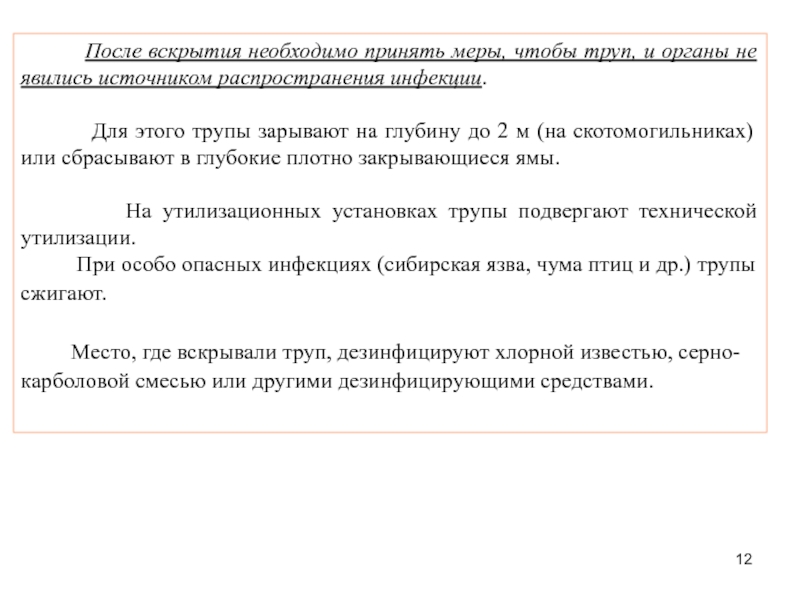 Слайд 5Вскрытие трупов животных осуществляется ветеринарными специалистами с соблюдением мер, исключающих