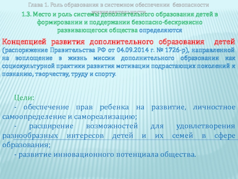 Глава 1. Роль образования в системном обеспечении безопасности жизнедеятельности