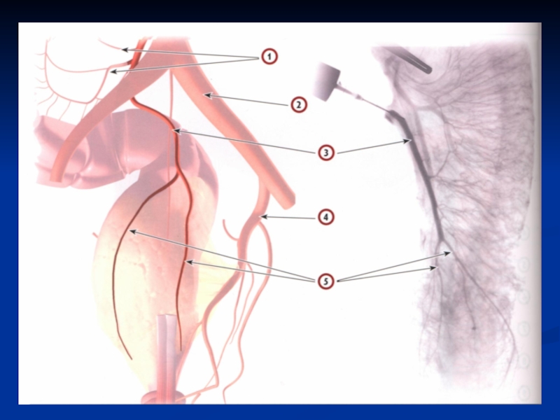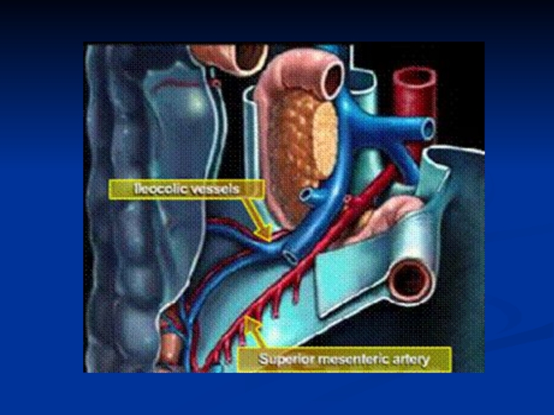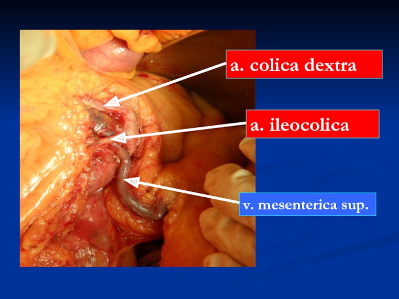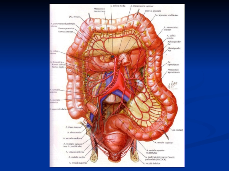 a.colica dextra, a.colica media, a.colica sinistra, a. mesenterica inferior), отдаленные