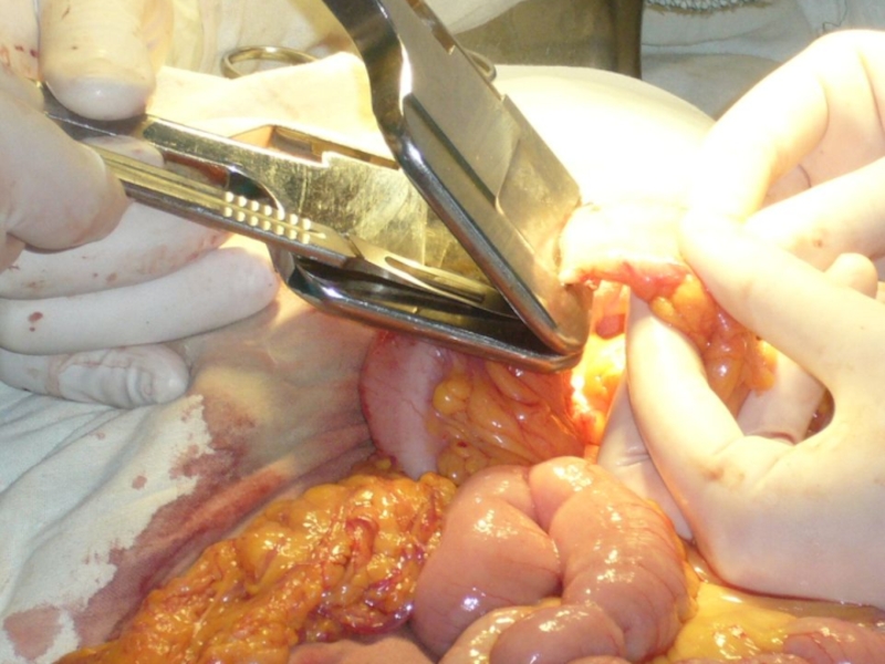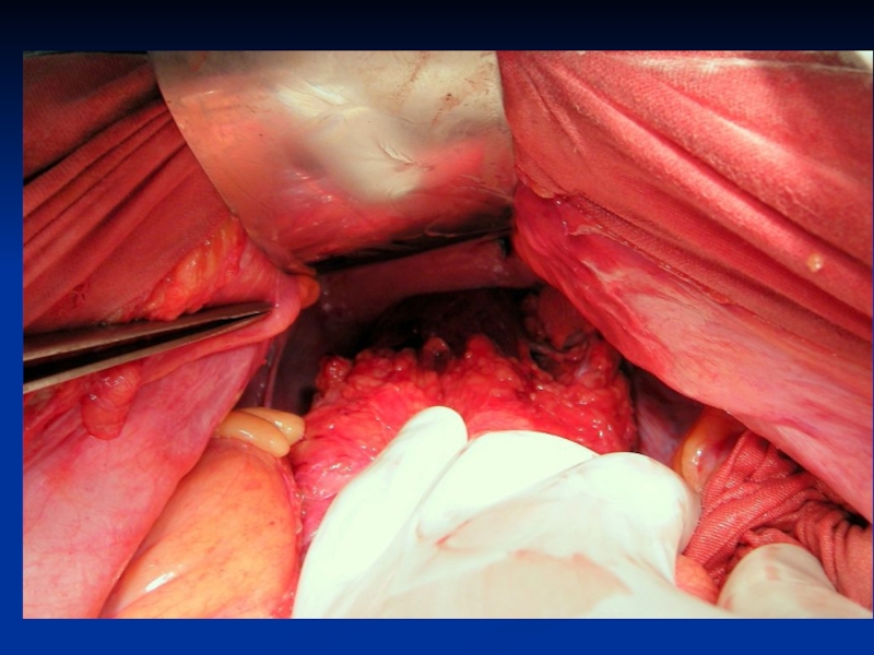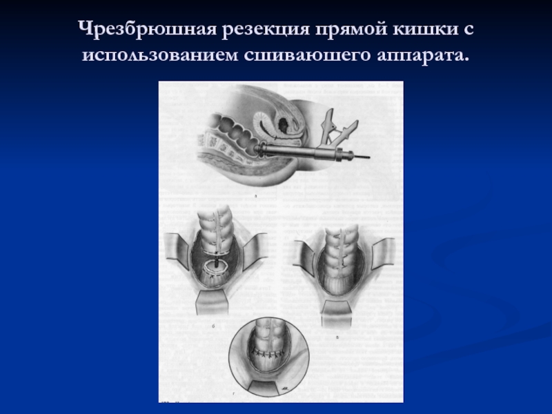 Слайд 86Чрезбрюшная резекция прямой кишки с использованием сшиваюшего аппарата.