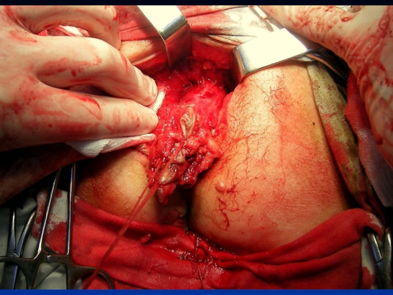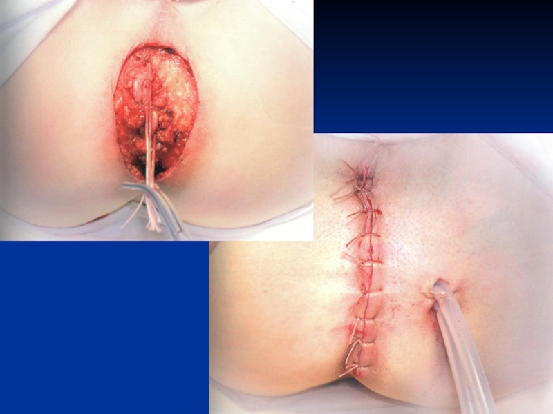 Слайд 75Брюшно-промежностная экстирпация прямой кишки. Основные моменты промежностного этапа операции.