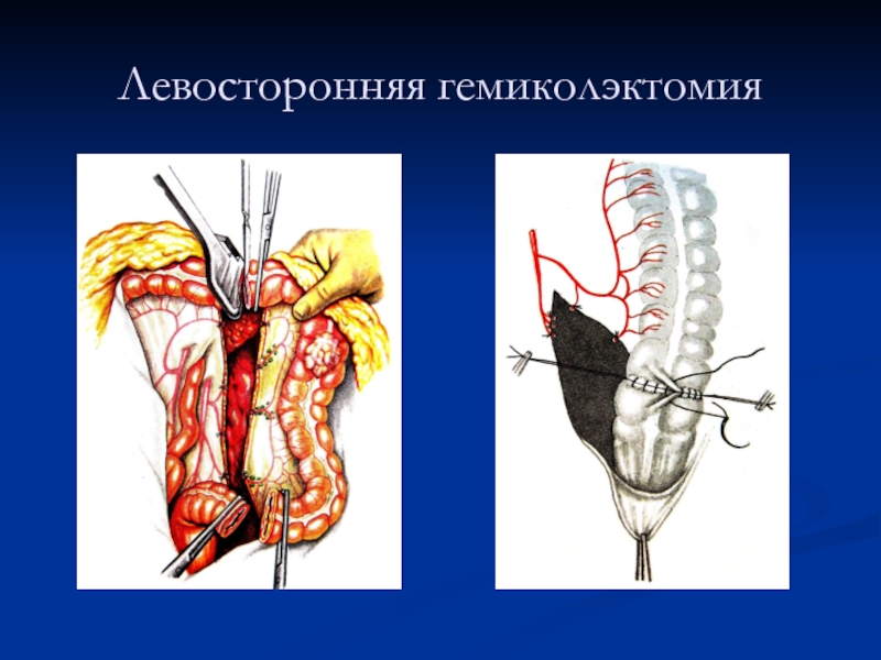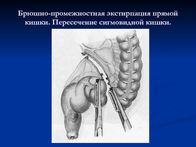 Слайд 71Брюшно-промежностная экстирпация прямой кишки. Пересечение сигмовидной кишки.