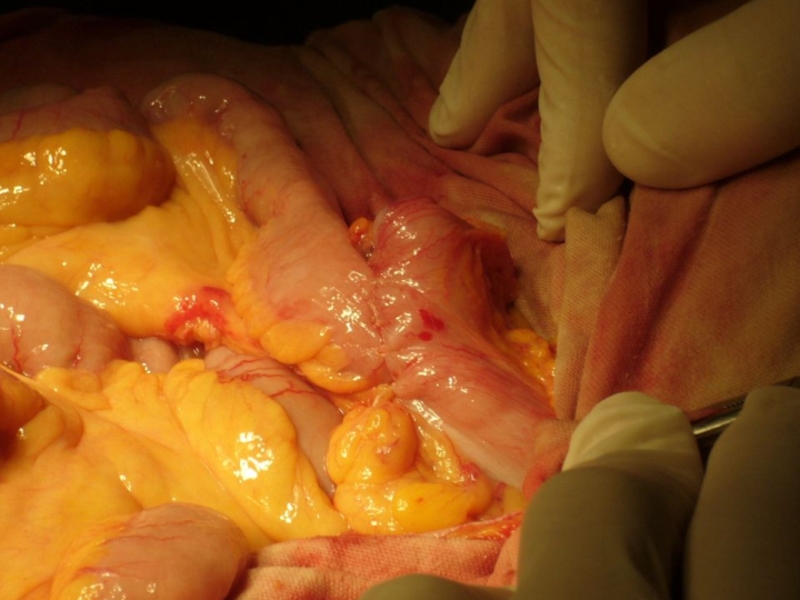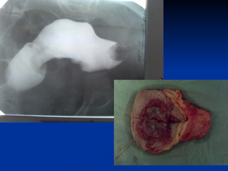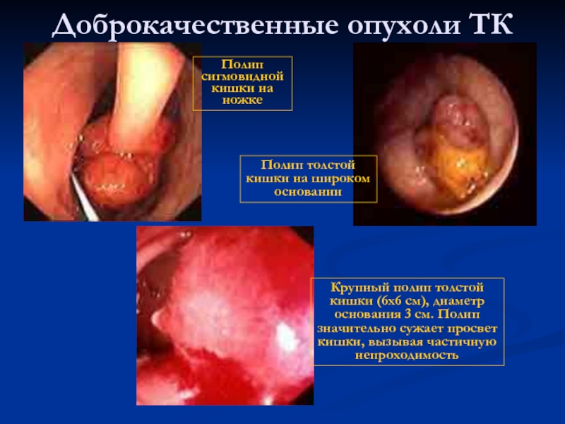 основания 3 см. Полип значительно сужает просвет кишки, вызывая частичную непроходимость