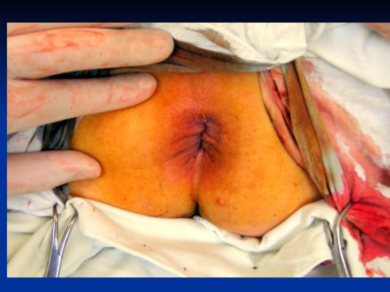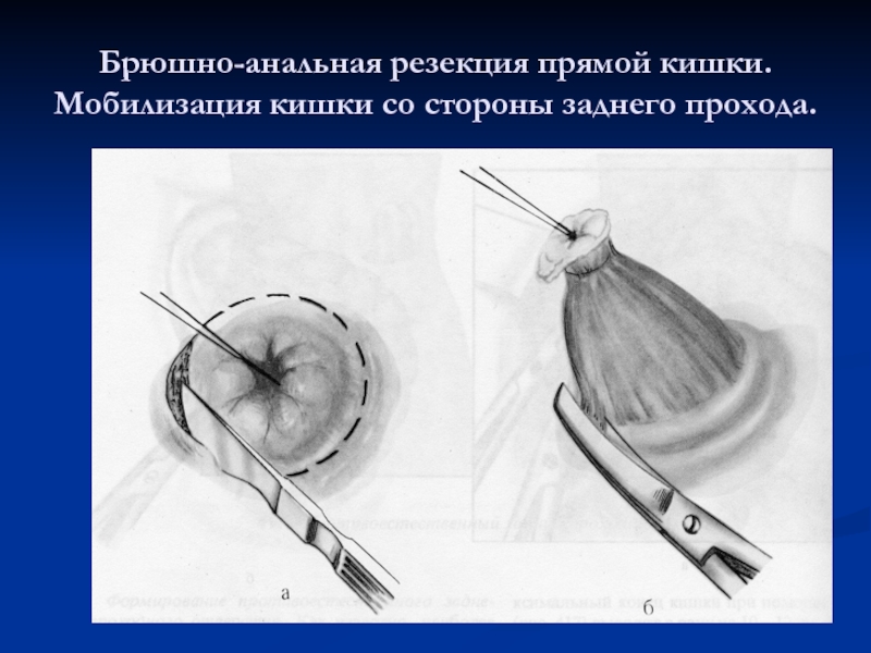 Слайд 83Брюшно-анальная резекция прямой кишки. Мобилизация кишки со стороны заднего прохода.