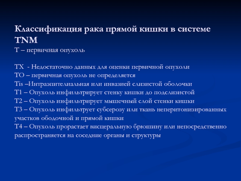 Т3 – Опухоль инфильтрует субсерозу или ткань неперитонизированных участков ободочной и прямой кишки