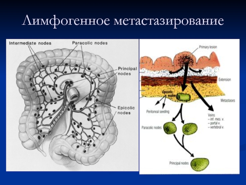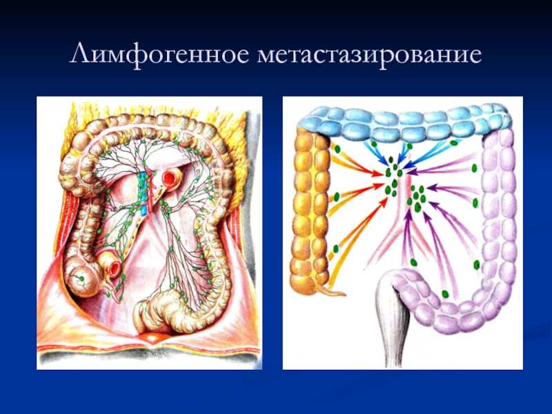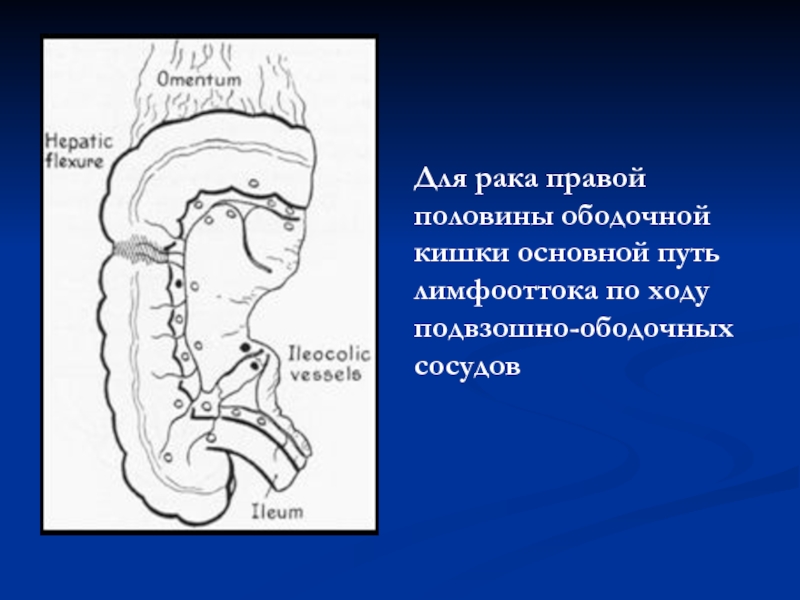 Слайд 38Для рака правой половины ободочной кишки основной путь лимфооттока по