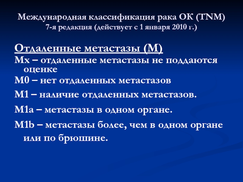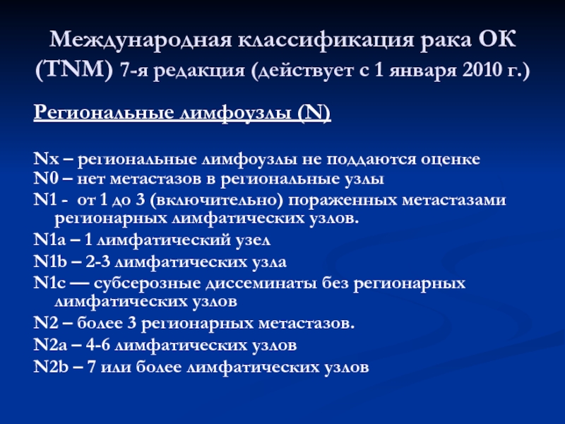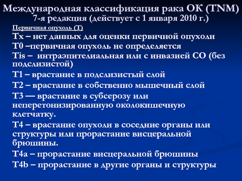 Слайд 7Международная классификация рака ОК (TNM) 7-я редакция (действует с 1