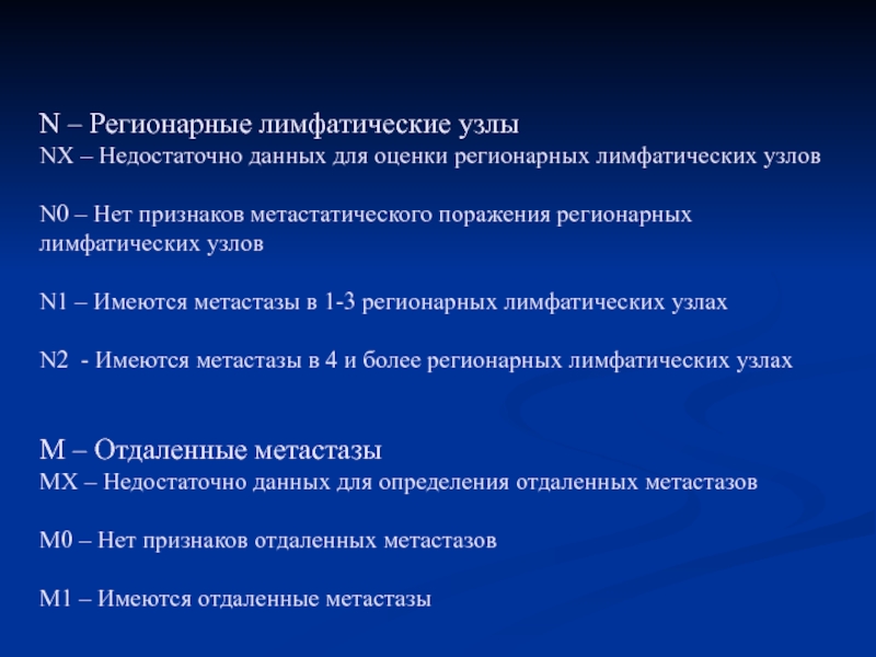 N2 - Имеются метастазы в 4 и более регионарных лимфатических узлах