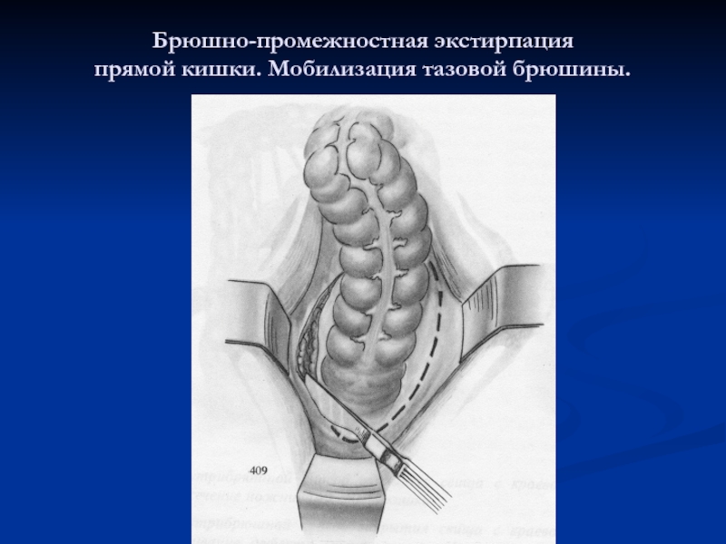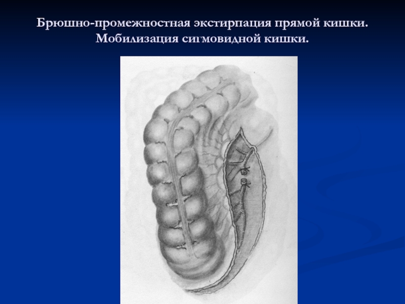 Слайд 74Брюшно-промежностная экстирпация прямой кишки. Мобилизация сигмовидной кишки.