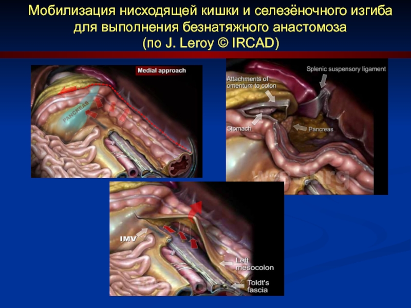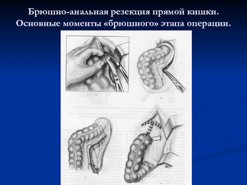 Слайд 82Брюшно-анальная резекция прямой кишки. Основные моменты «брюшного» этапа операции.