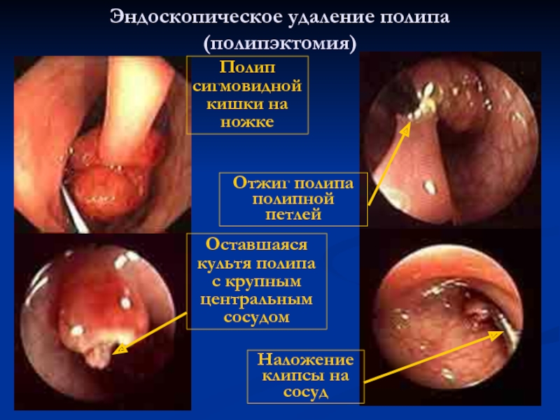 Слайд 56Эндоскопическое удаление полипа (полипэктомия)