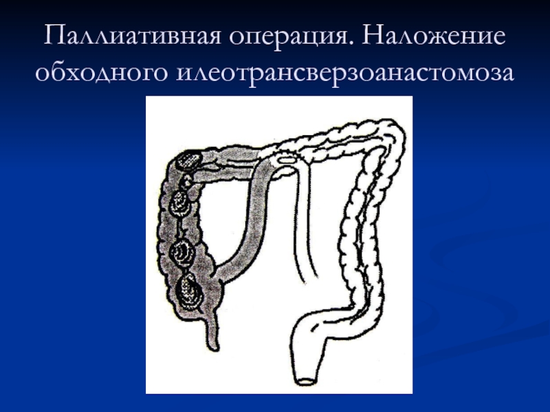 Слайд 54Паллиативная операция. Наложение обходного илеотрансверзоанастомоза
