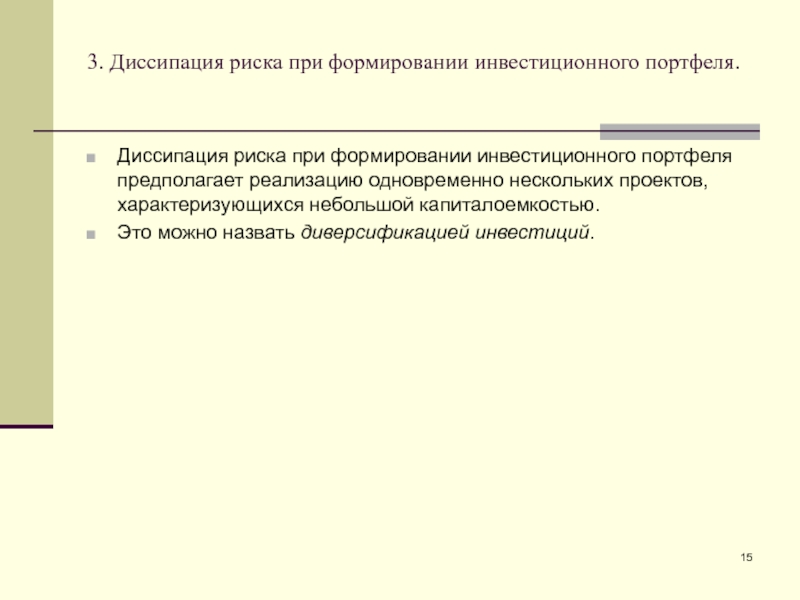 Слайд 153. Диссипация риска при формировании инвестиционного портфеля.