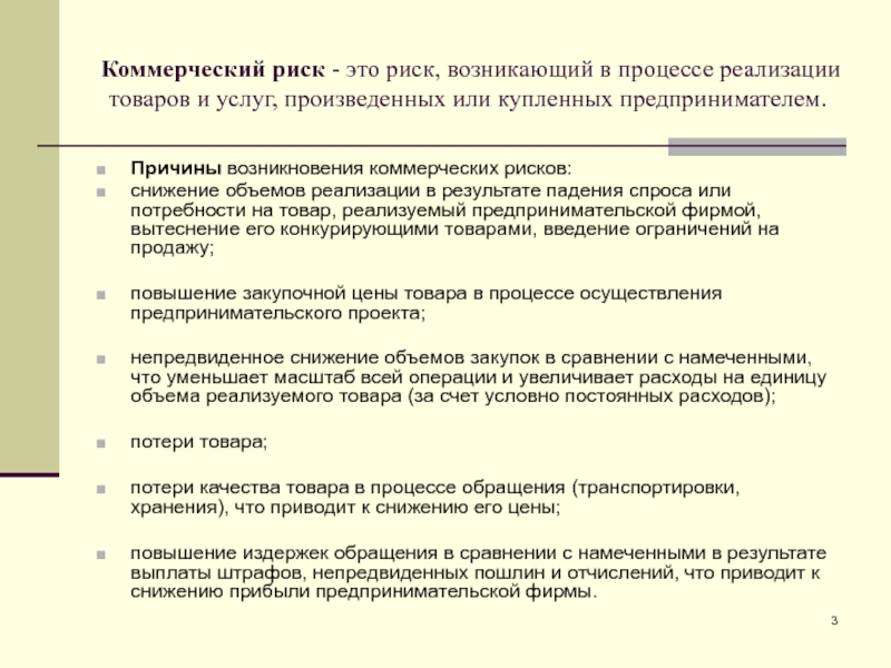 Слайд 3Коммерческий риск - это риск, возникающий в процессе реализации товаров и