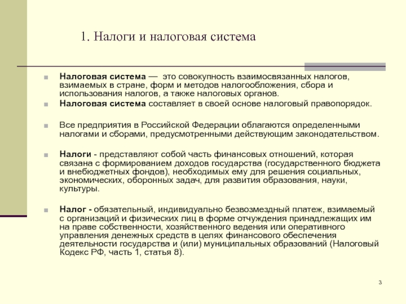 Налоговая система составляет в своей основе налоговый правопорядок.
