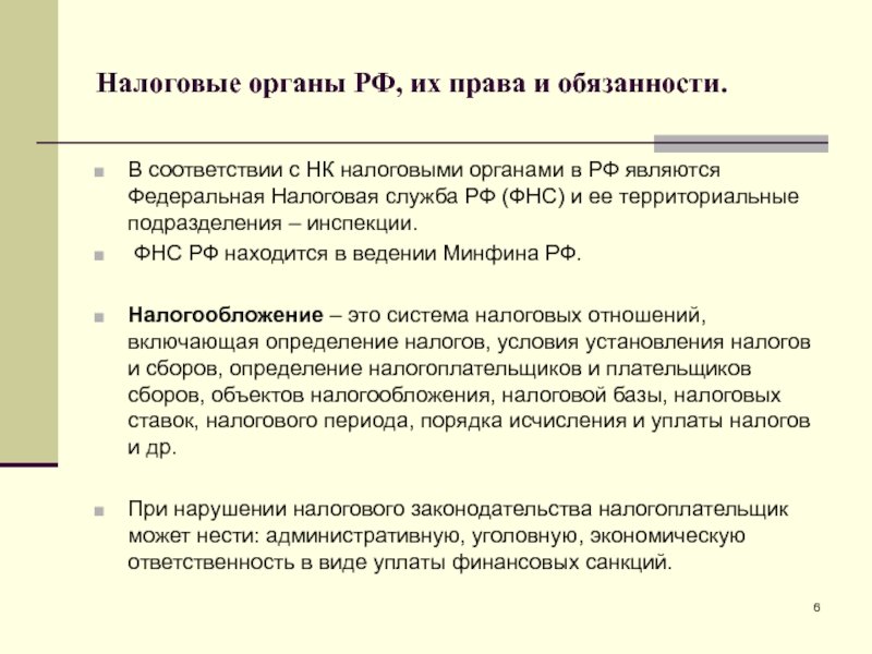 Слайд 6Налоговые органы РФ, их права и обязанности.